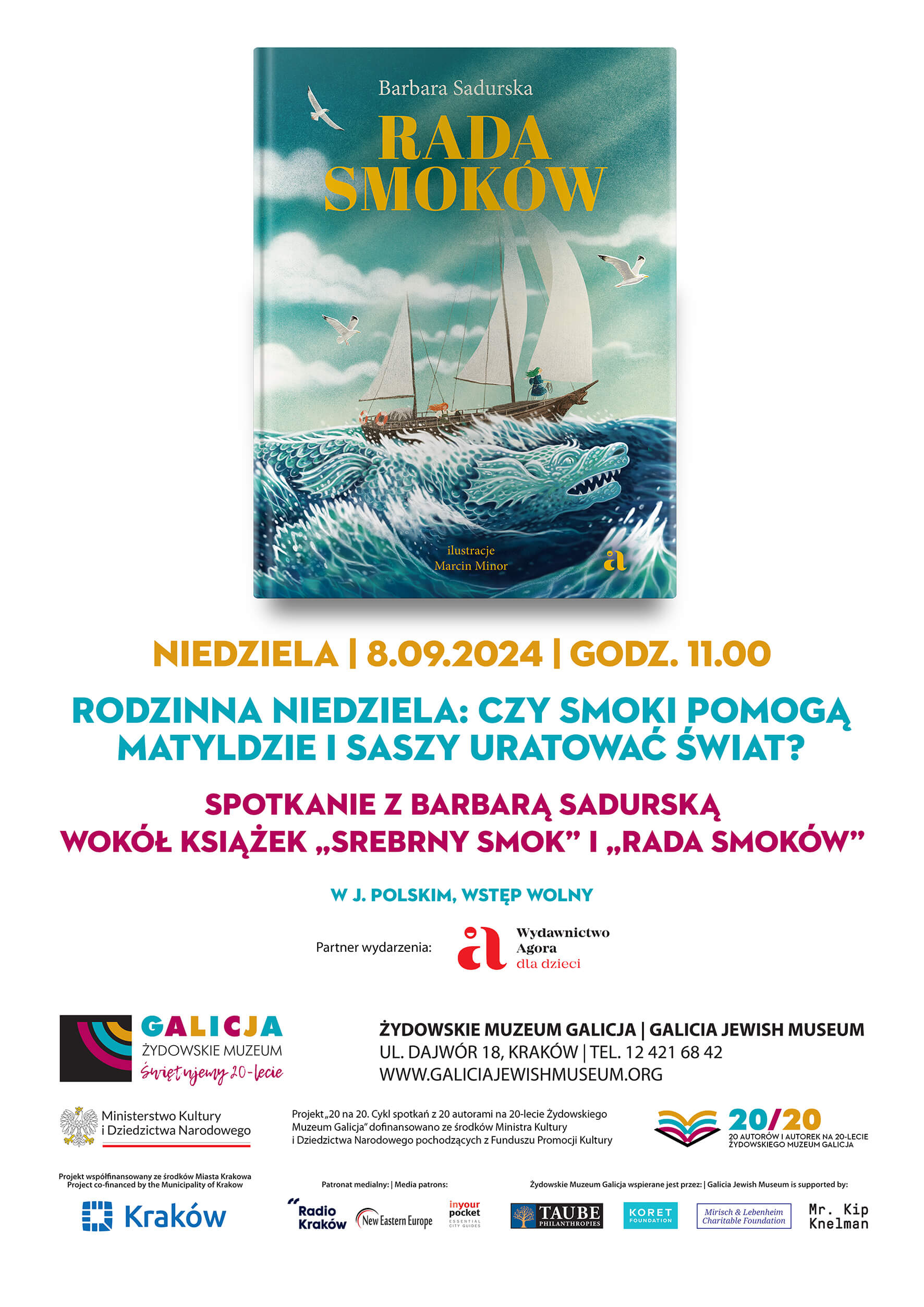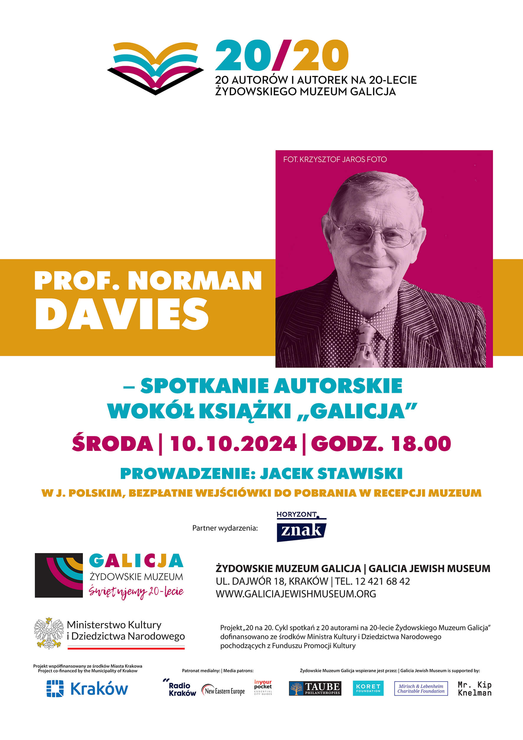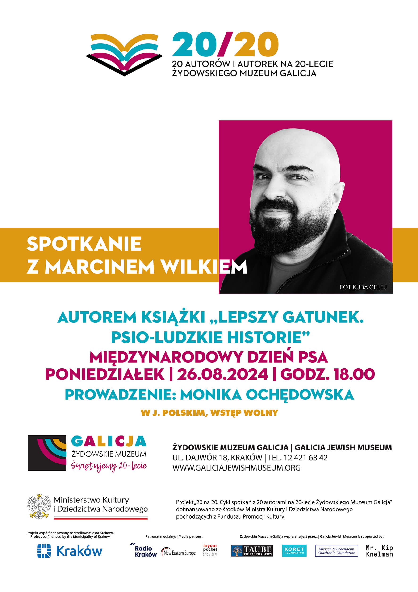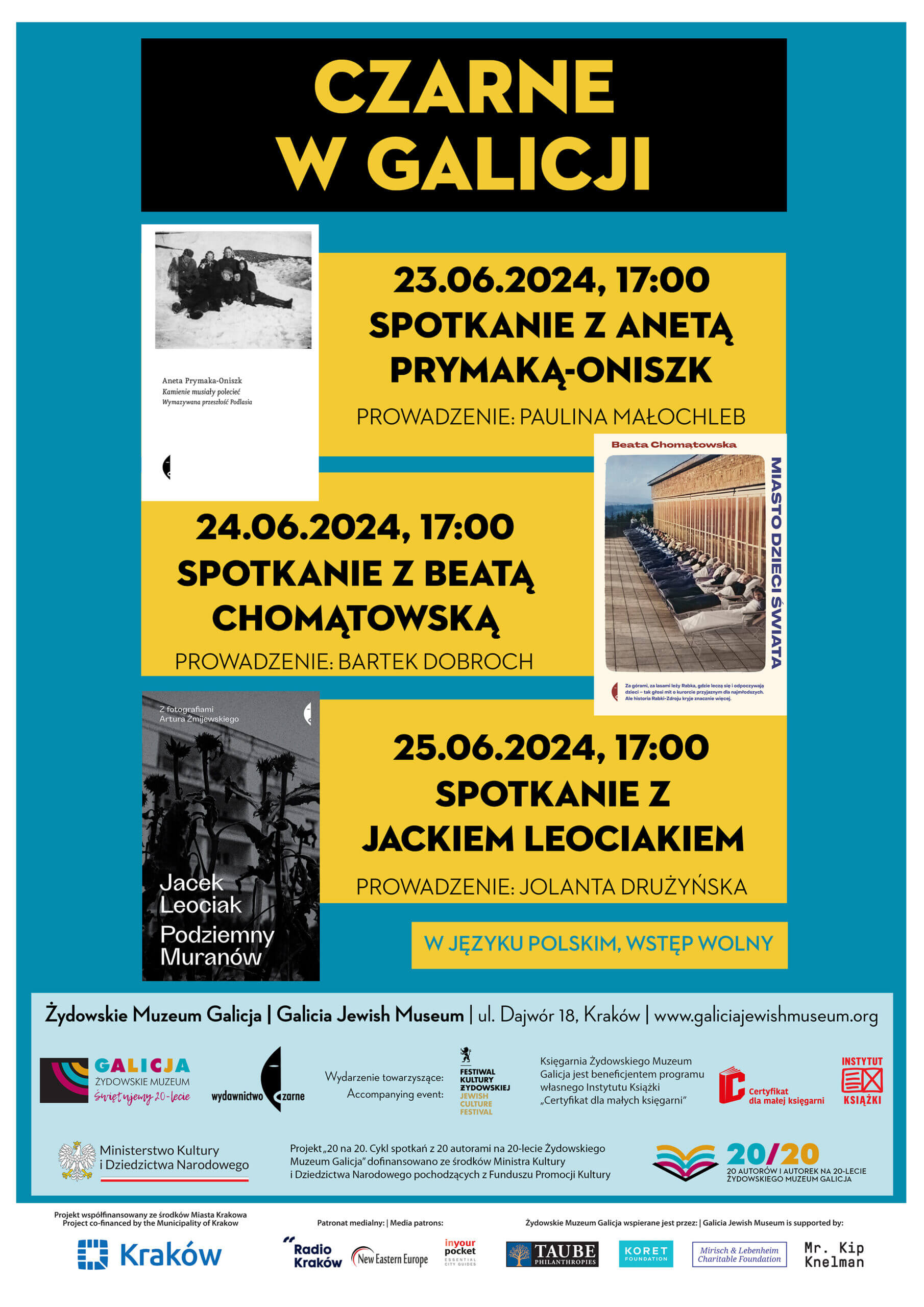 Projekt „20 na 20. Cykl spotkań z 20 autorami na 20-lecie Żydowskiego Muzeum Galicja” dofinansowano ze środków Ministra Kultury i Dziedzictwa Narodowego pochodzących z Funduszu Promocji Kultury – państwowego funduszu celowego.