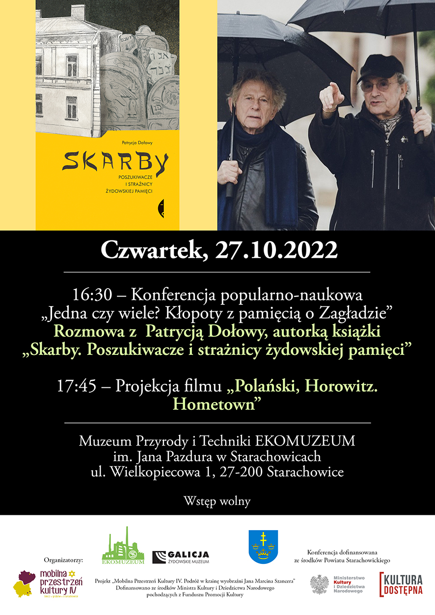 „Mobilna Przestrzeń Kultury” to realizowany z sukcesem od 4 lat projekt, który zakłada przygotowanie mobilnej oferty kulturalno-edukacyjnej związanej z szeroko pojętym dziedzictwem żydowskim i zrealizowanie cyklu różnorodnych wydarzeń kulturalnych w wybranych miejscowościach woj. małopolskiego i świętokrzyskiego.