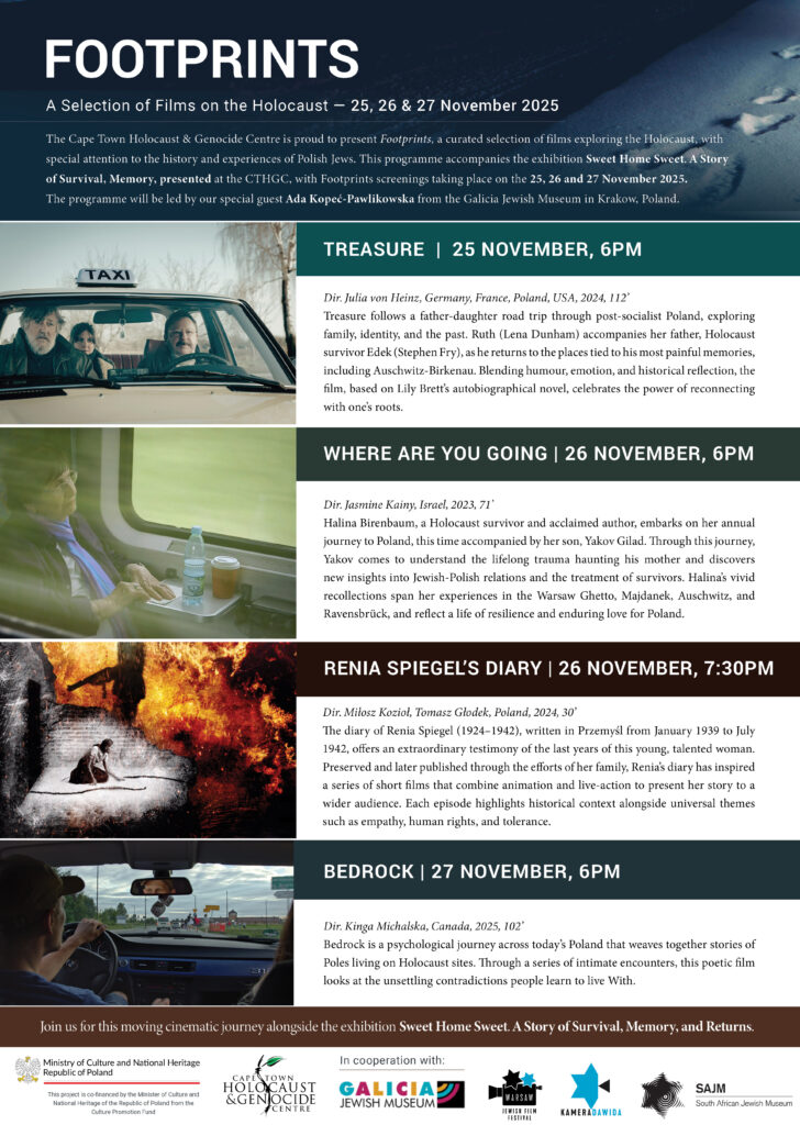 From November 25th until November 27th, 2025, at the Cape Town Holocaust & Genocide Centre, South Africa, a screening of Holocaust-themed films, co-organised by the Galicia Jewish Museum and the Camera of David Foundation, will take place.